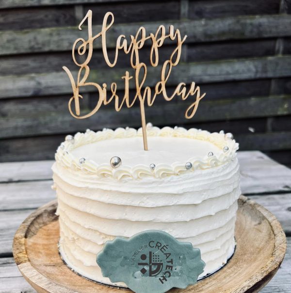 Sublimez vos créations pâtissières avec notre cake topper “Happy Birthday” en bois.