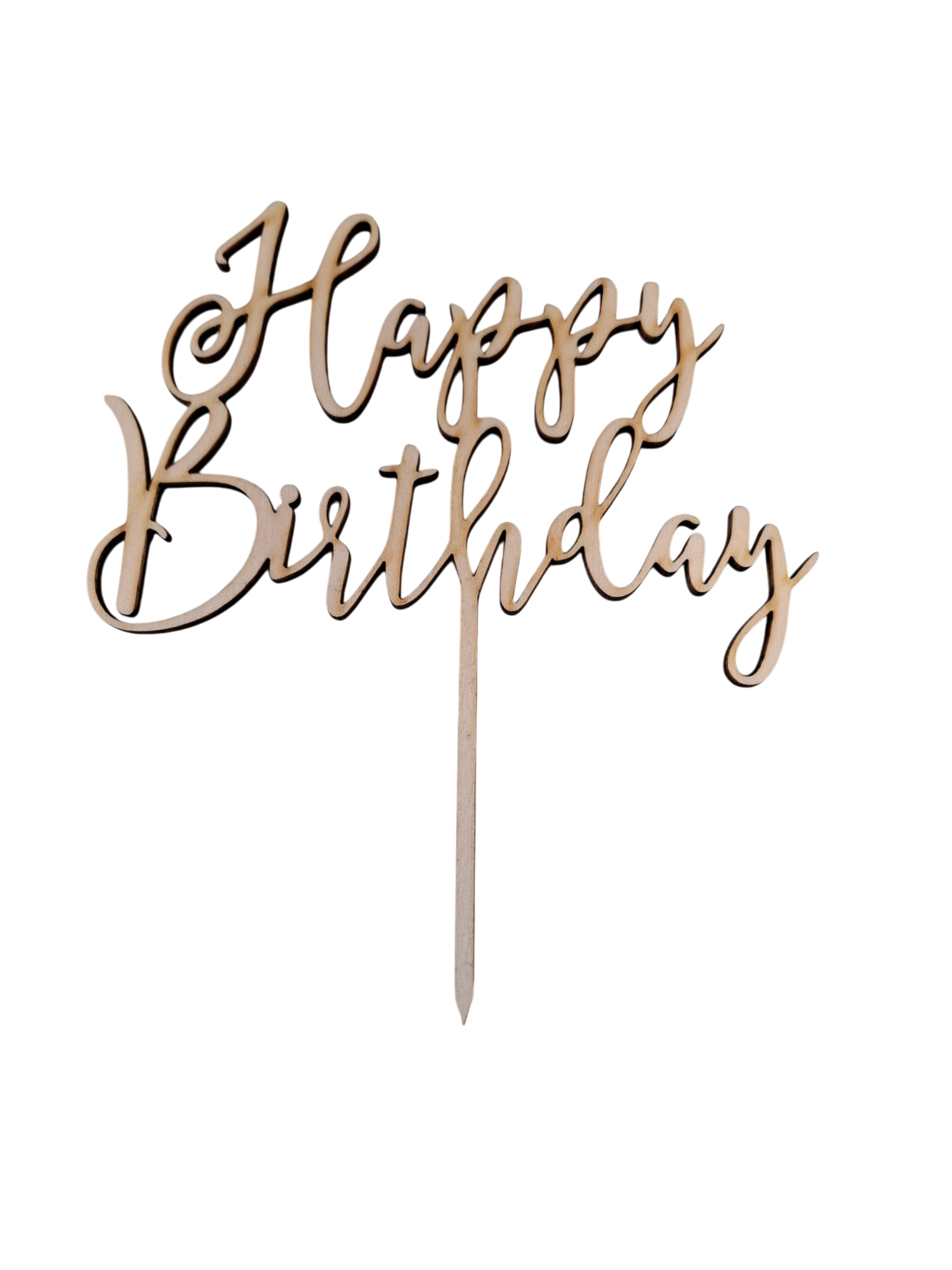 Cake topper bois – HAPPY BIRTHDAY 160x140mm en bois : une touche naturelle et élégante pour vos gâteaux
